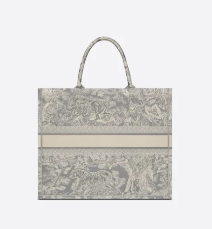 LARGE DIOR BOOK TOTE Gray Toile de Jouy Reverse Embroidery (42 x 35 x 18.5 cm)
