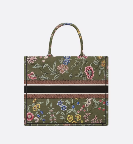 LARGE DIOR BOOK TOTE Green Multicolor Dior Petites Fleurs Embroidery (42 x 35 x 18.5 cm)