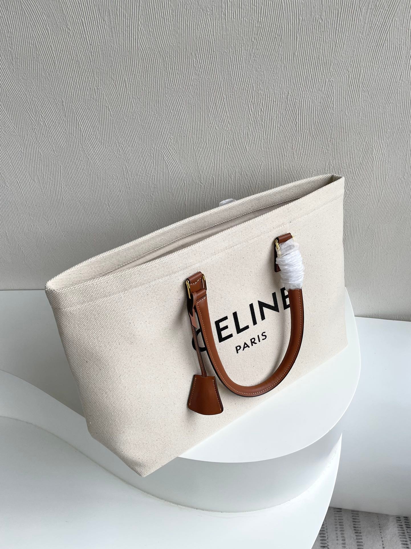 CABAS CELINE horizontal printed canvas and calfskin bag, 46% cotton, 54% calfskin, 100% cotton lining, shoulder or hand, inner zip pocket, strength after this bag: ultra fried street 💥CABAS canvas latest collection popular toto#💻 notebook stress-free all-fit short trip shopping bag