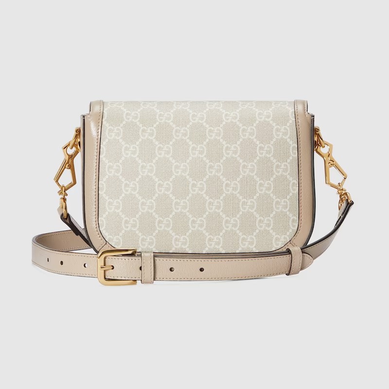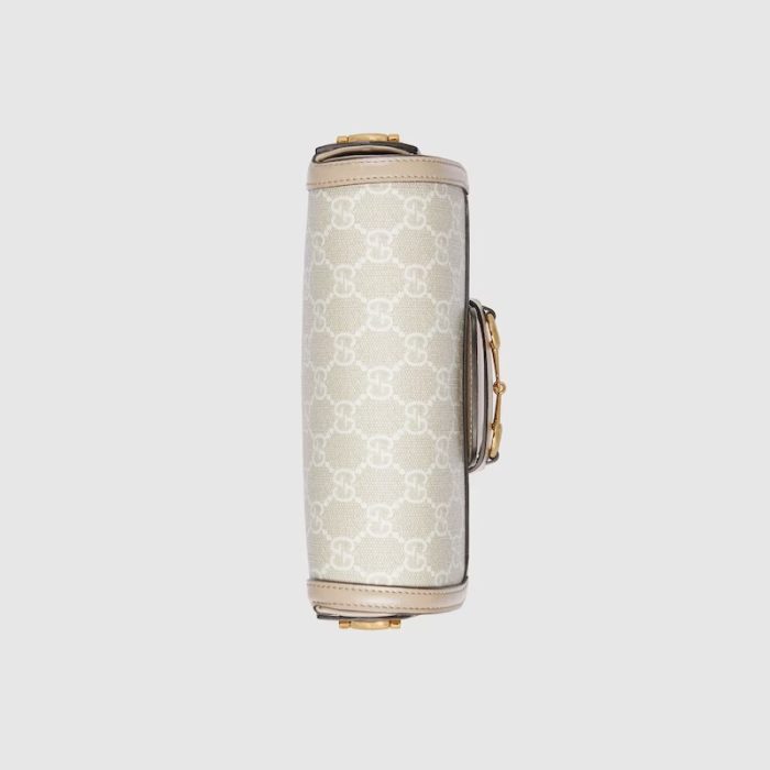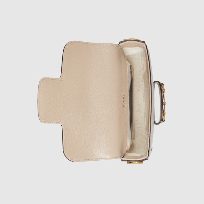 Inspired by archival designs. Gucci Horsebit 1955 unifies the original details first introduced over six decades ago with a modern spirit. highlighting the Horsebit. Part of Gucci’s genetic code. the double ring and bar design has been established as one of the most distinctive elements among the House symbols borrowed from the equestrian world. The bag is reimagined in a mini size with an allover monogram motif.