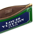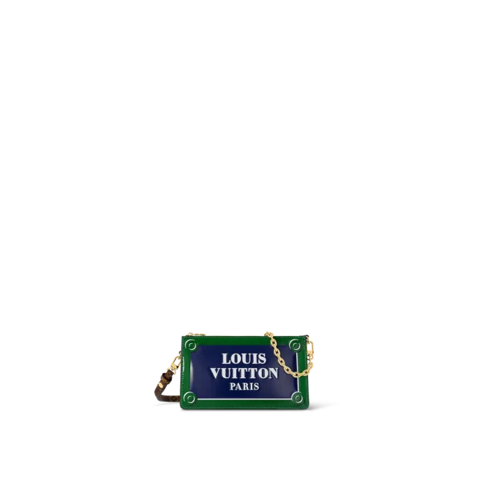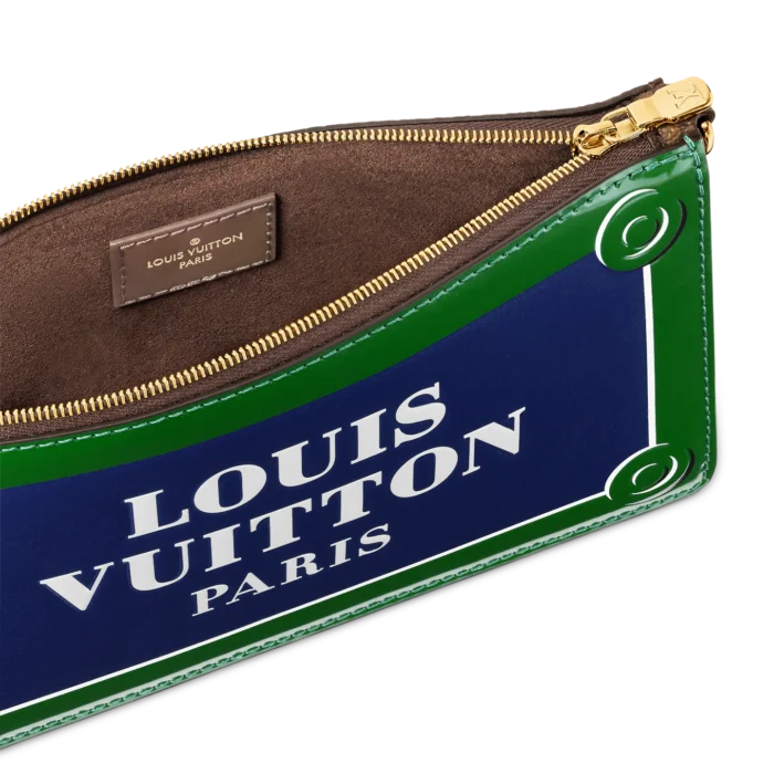 The Lexington Pouch is made from calf leather and features an all-over glossy print of a Parisian street-sign that says “Louis Vuitton Paris” in bold white letters. This zipped pouch offers a number of carry options thanks to a detachable chain and a removable, adjustable strap.