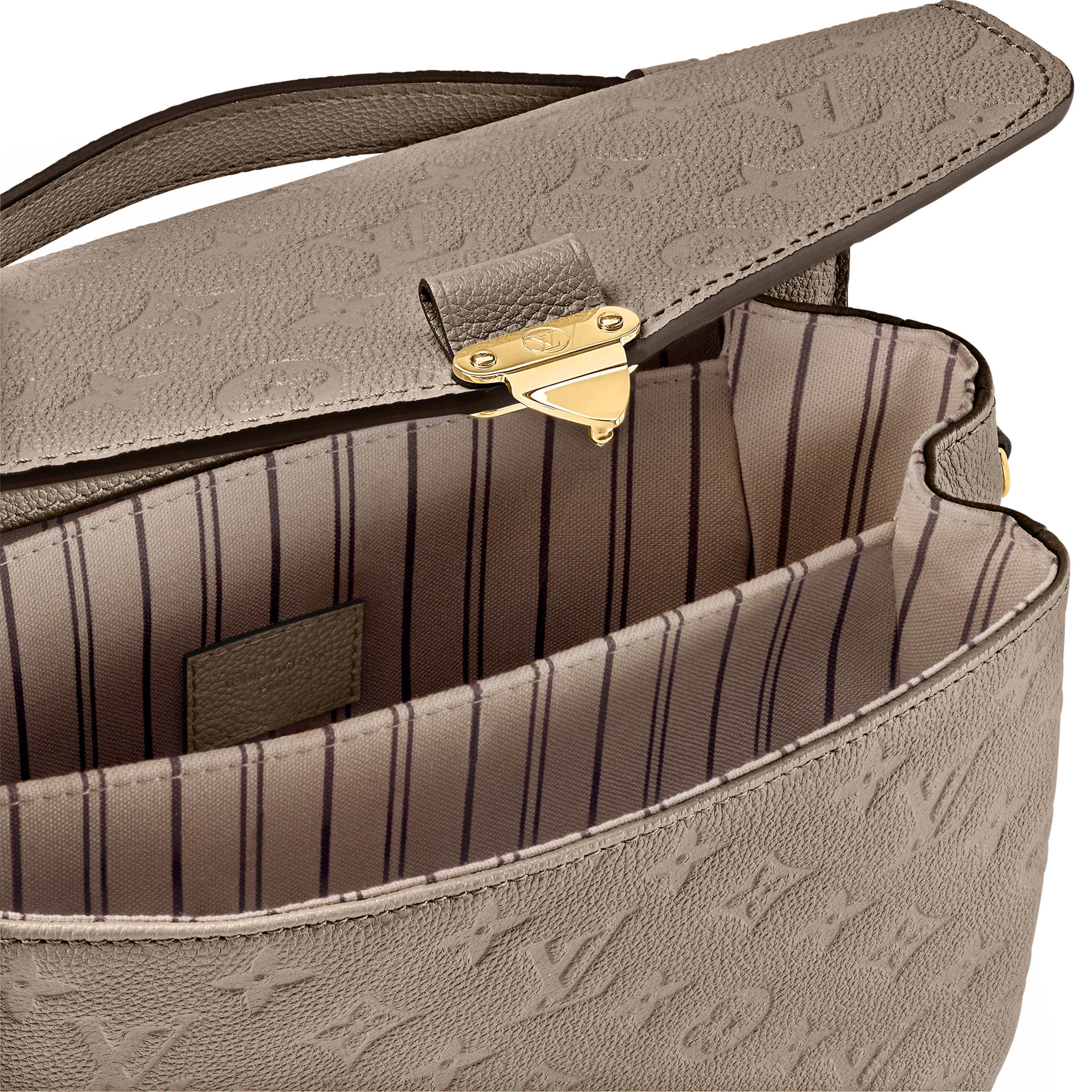 The Pochette Métis handbag is a chic. scaled-down version of the classic satchel silhouette. This covetable model is crafted from supple Monogram Empreinte leather. accented with an S-lock closure inspired by historic House trunks. Versatile. compact and surprisingly roomy. it is fitted with a stylish top handle and a detachable strap for shoulder or cross-body wear.