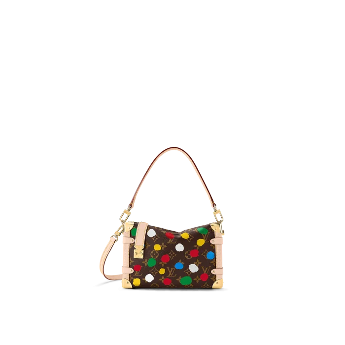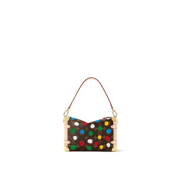 For the exclusive new Louis Vuitton x Yayoi Kusama collaboration. the LVxYK Side Trunk features an eye-catching motif symbolic of the world-renowned Japanese artist’s work. Mesmerizing dotted patterns have been a signature theme in her paintings. sculptures and installations since she emerged as an avant-garde pioneer in the 1960s – like these multicolored dots screen-printed with a 3D effect on Monogram canvas. An upbeat variation on a stylish. body-friendly bag.