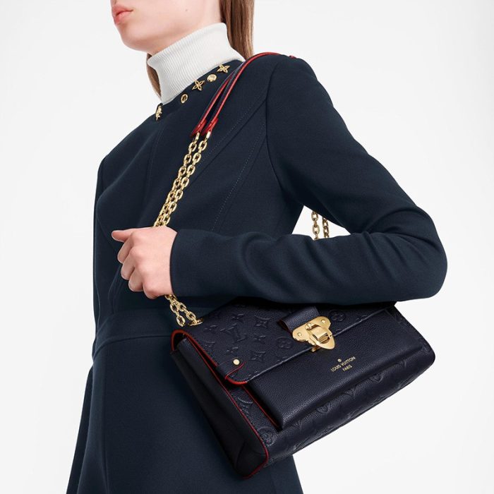Crafted from a sophisticated mix of smooth and embossed Monogram Empreinte leather. the Vavin PM handbag is signed with a bold. shiny statement lock. Supple and lightweight. it is a chic yet relaxed model that moves with ease from day to evening. The adjustable chain-and-leather handle adapts to shoulder or cross-body wear.