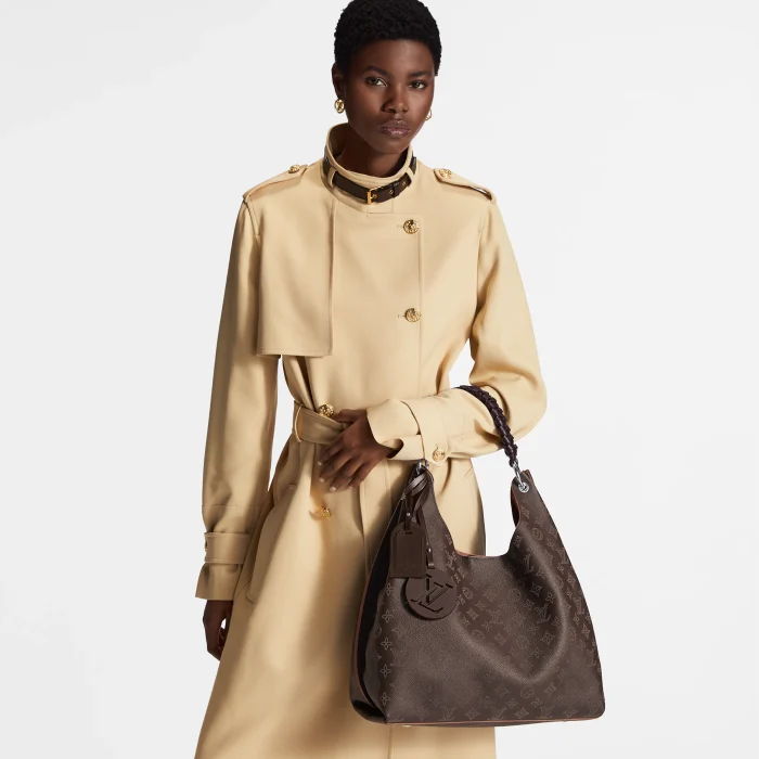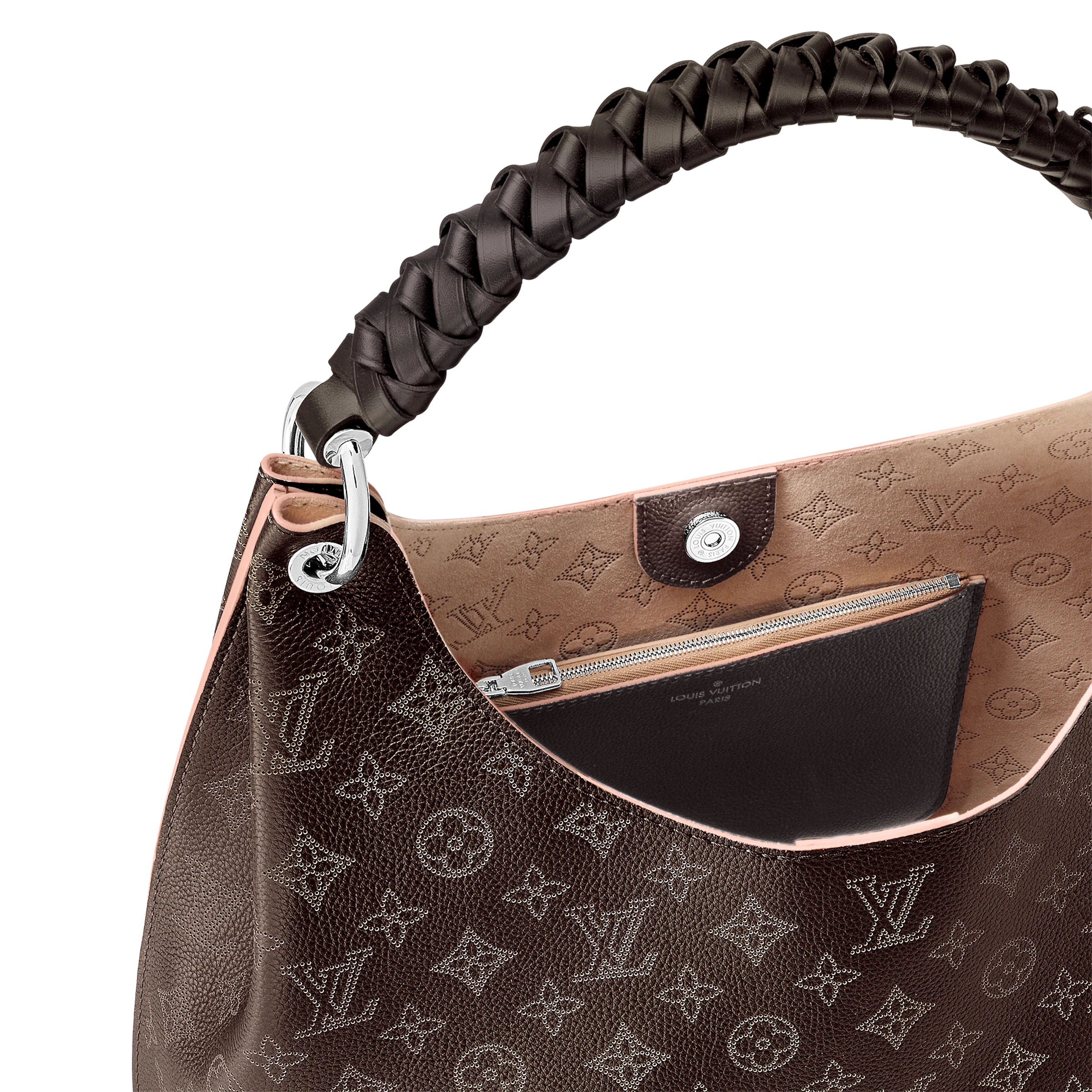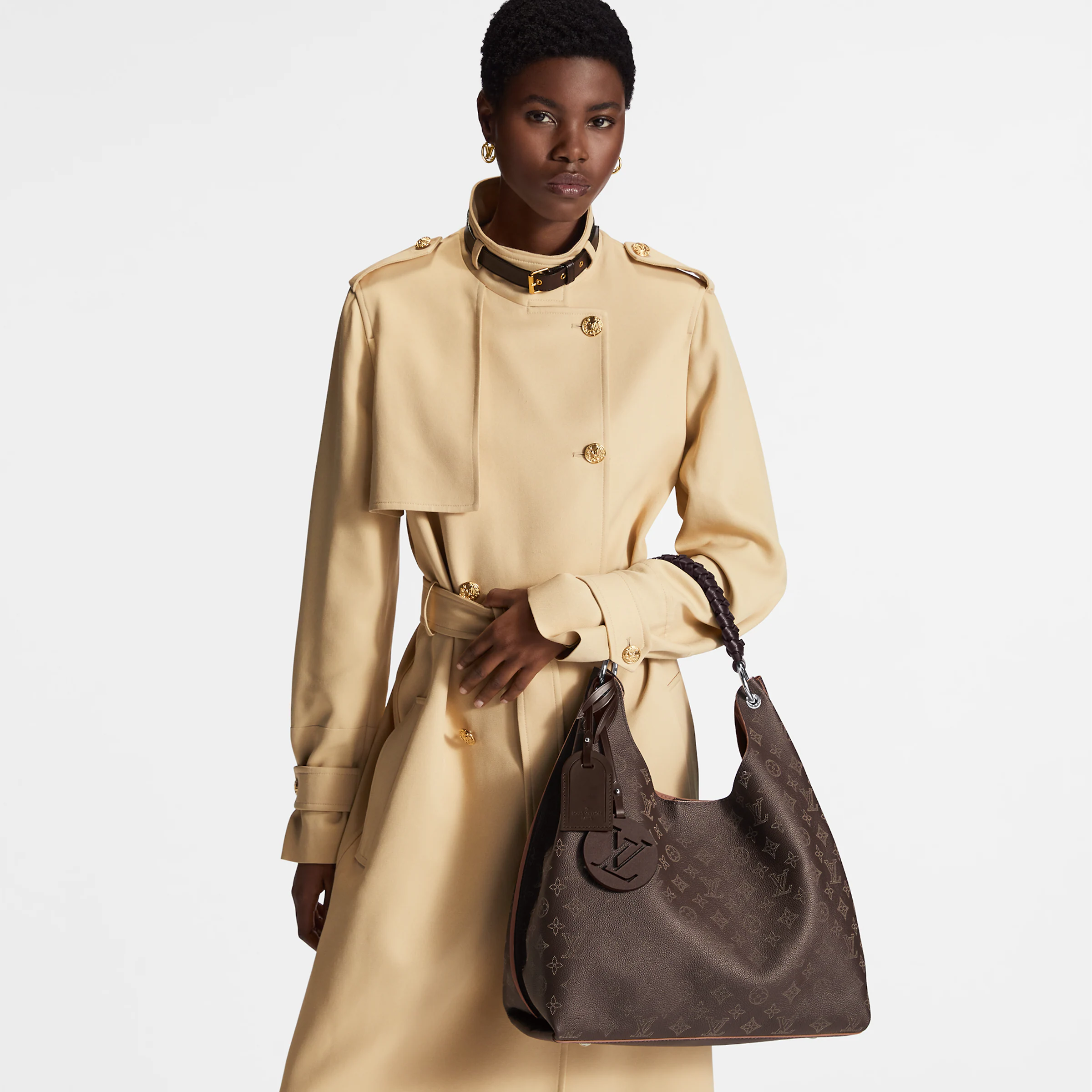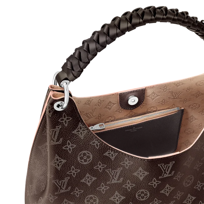 For Fall 2020. the contrasted perforation is offered on the Carmel hobo bag in a sophisticated chocolate color. enhanced by a luminous contrasted cachemire tone. This lightweight yet roomy bag features a braided-leather handle for comfortable shoulder or elbow carry.