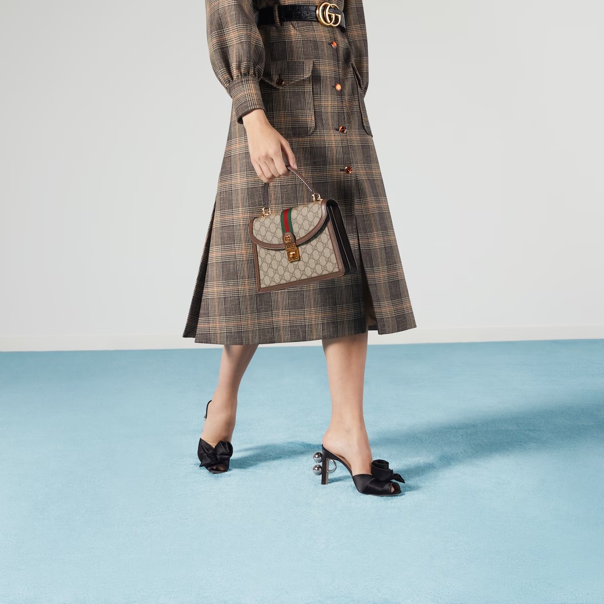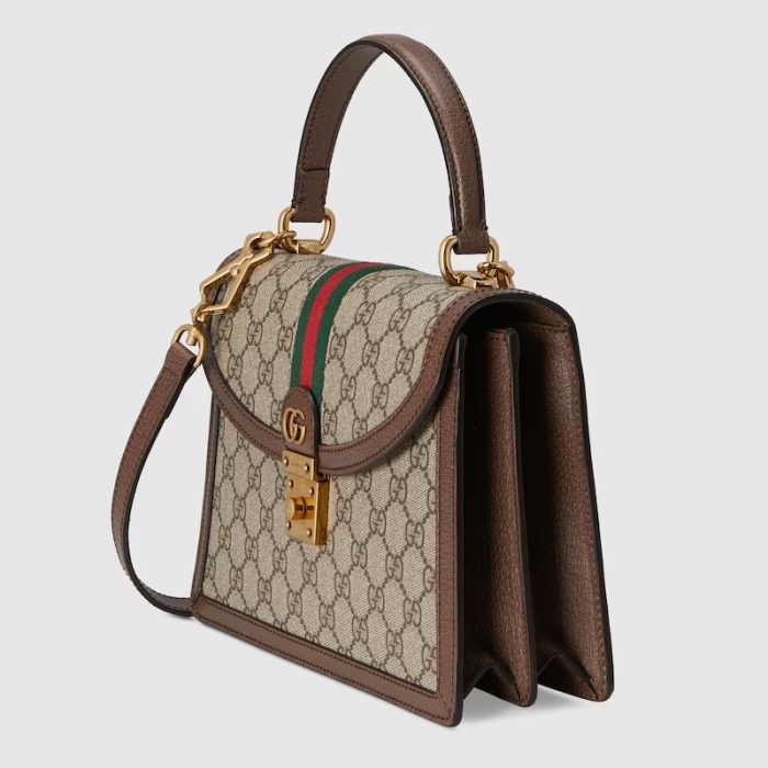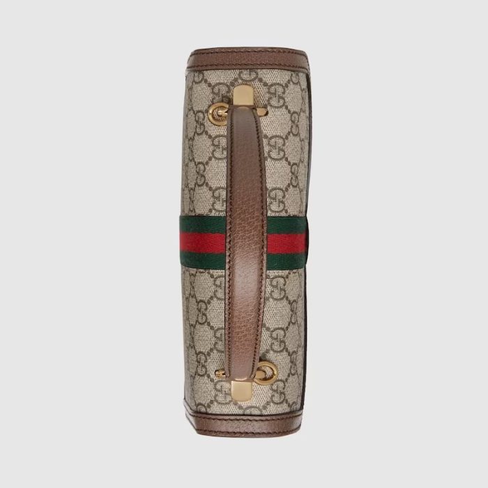 Mirroring the material’s historic origins. GG Supreme is introduced in a timeless mix of blue and beige for Gucci Love Parade. The canvas has come to the front of each collection decade after decade to become a hallmark of the House. Here. the classic palette defines this small-sized Ophidia top handle bag.